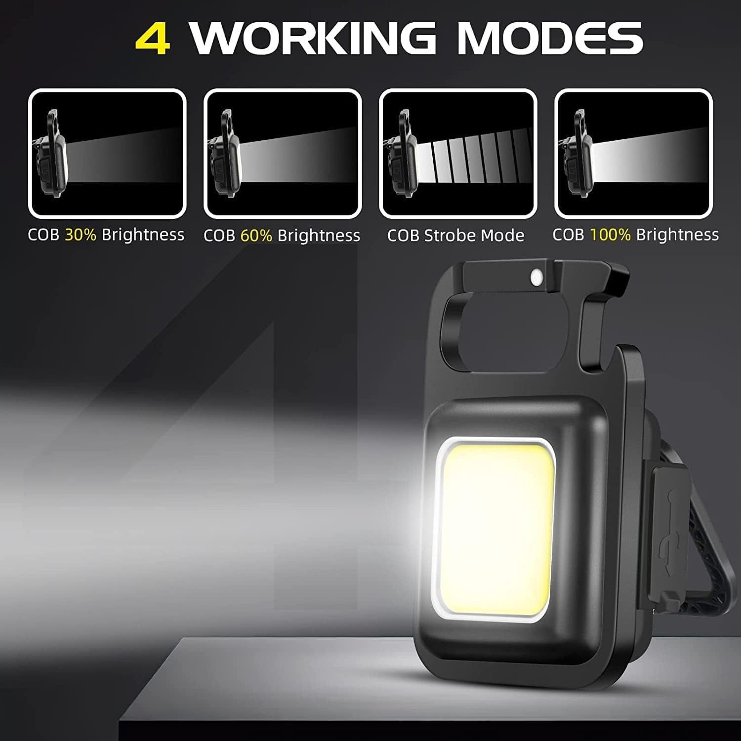 1.800 Lumen Brightness: This keychain flashlight delivers maximum brightness of 800 lumens with a wide-angle light. The COB LED technology makes it a versatile tool as a small work light and emergency light.