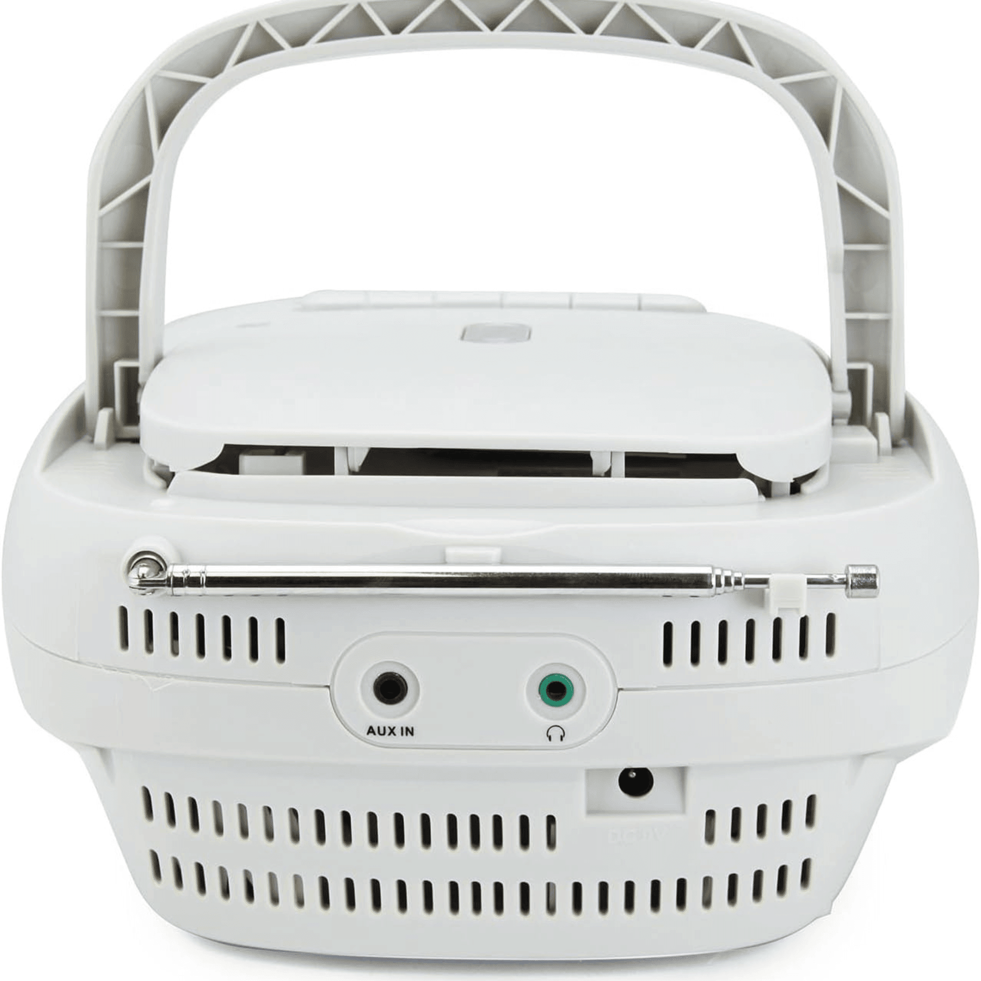 - Telescopic antenna and Aux-in jack with dynamic high-performance speakers