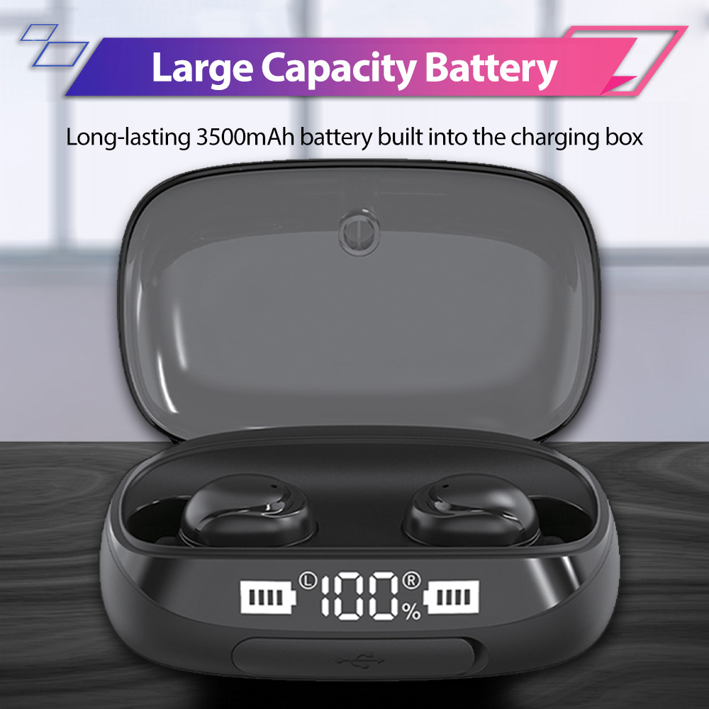 • Extended Runtime - Wireless earphones with a built-in 2000mAh rechargeable battery charging case allow 3-5 hours of runtime on a single charge.